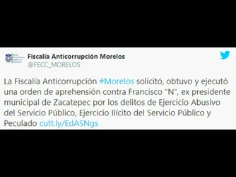 Aprehenden por peculado a ex alcalde de Zacatepec, Morelos