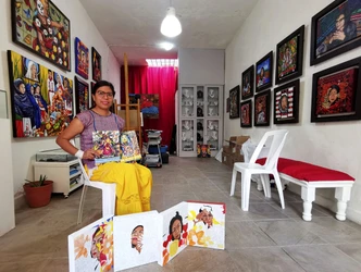 Pintora crea y dona libros para colorear con poemas en náhuatl y mazateco