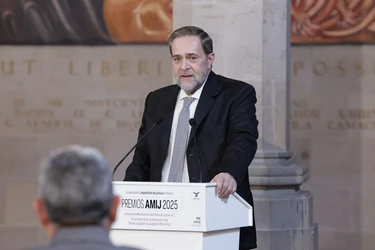 Pardo, junto a la ministra presidenta, Norma Piña Hernández y Javier Laynez Potisek, encabezaron la ceremonia de entrega de “Premio AMIJ 2025"