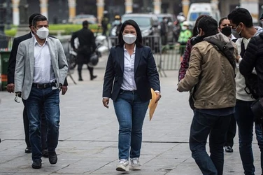 La primogénita del condenado ex presidente Alberto Fujimori(1990-2000) salió con mascarilla y guantes blancos del penal de mujeres de Chorrillos, en el sur de Lima.