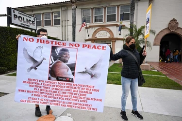 Las imágenes muestran a Anthony Lowe, un hombre negro de 36 años, dejando su silla de ruedas cuando oficiales de la policía de Huntington Park le apuntan.