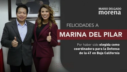 Marina del Pilar ganó la encuesta interna para la coordinación de la defensa de la 4T en el estado, anunció Mario Delgado.