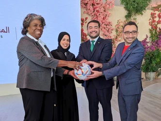 Alfonso Zegbe, coordinador de la Estrategia del Gobierno de México de la SRE la recibió junto con Linda Thomas-Greenfield, embajadora de EU ante ONU y Omar Alghabra, ministro de Transporte de Canadá.