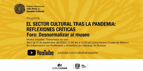 El programa del foro tendrá como tema El sector cultural tras la pandemia: reflexiones críticas, que se llevará a cabo del 7 al 12 de septiembre.