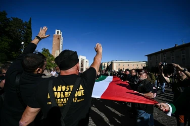 Fascistas italianos vestidos de negro conmemoran centenario de marcha