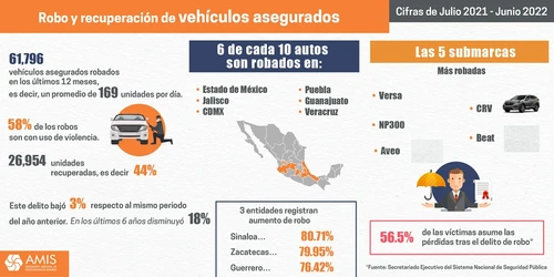 169 vehículos asegurados son robados diariamente en México: AMIS