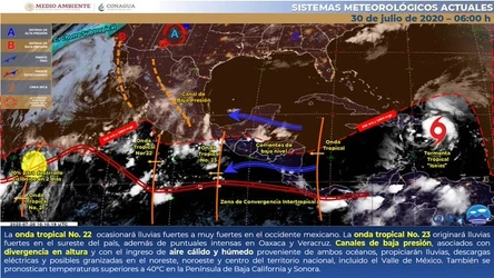 El Monzón mexicano se mantendrá sobre el noroeste de territorio nacional, mientras que la Onda Tropical 13 se ubica sobre el Istmo de Tehuantepec.