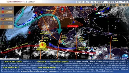 Las precipitaciones son originadas por un canal de baja presión extendido por la Sierra Madre Occidental y el paso de la Onda Tropical Número 11.