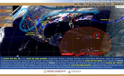 Prevén lluvias en el norte del país por frente frío