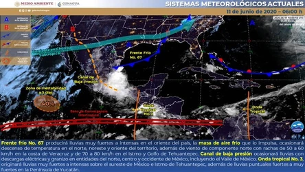 El meteoro se desplaza sobre el Golfo de México hacia Louisiana, EU. En tanto, la Onda Tropical Número 39 avanza sobre el Golfo de Tehuantepec.