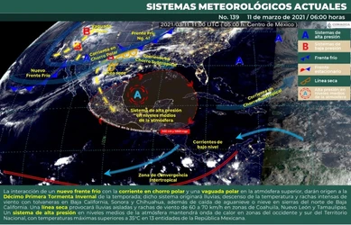 La dependencia también informó que se esperan temperaturas máximas de 35 a 40 grados Celsius para sitios de Chiapas, Colima, Guerrero, Jalisco, entre otras.