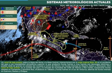 Las precipitaciones serán originadas por la Onda Tropical número 17, ubicada en la costa sur de Guerrero.