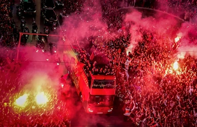 La selección argentina tuvo que continuar su desfile por Buenos Aires vía aérea, tras resultar imposible avanzar entre una multitud de 4 millones de personas.