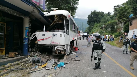 Autobús turístico choca contra tienda en Veracruz; hay 19 lesionados