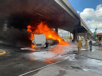 Al parecer el conductor de la pipa quiso ganarle el paso al tren y se impactó.