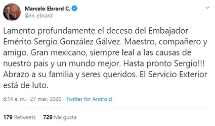 González Gálvez fue embajador de México en Japón en dos periodos de 1983 a 1988 y de 19992 a 1994.