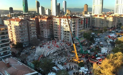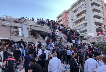 Turquía, Grecia. 30 de octubre de 2020. Un sismo de magnitud 7.0 azotó la región del mar Egeo, lo que provocó un "mini tsunami", al menos cuatro muertos, centenas de heridos y decenas de edificios derrumbados al oeste de Turquía, así como afectaciones en la isla griega de Samos. Imágenes de una cadena humana que intentaba rescatar personas atrapadas entre los escombros, era visible en la ciudad turca de Izmir.