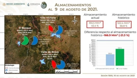 Datos del Comité Nacional de Grandes Presas señalan que el almacenamiento de las tres principales presas del Sistema superan el promedio para esta fecha, que es de 66.8 por ciento.