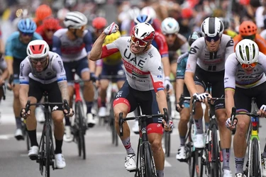 El campeón nacional belga, uno de los gregarios del defensor del título y líder de la general, Tadej Pogacar, se escapó de un grupo de seis corredores a unos 43 kilómetros de la meta y ya no miró atrás, aventajando en 1:28 a su compatriota Victor Campenaerts, del equipo Visma-Lease a Bike.