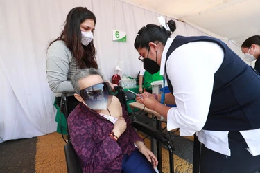En Ecatepec, Estado de México, continúa la aplicación de la segunda dosis del biológico Sinovac. Este jueves aumentó la afluencia a los centros de vacunación.