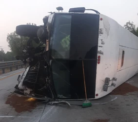 Chocan autobús y tractocamión en la autopista México-Querétaro