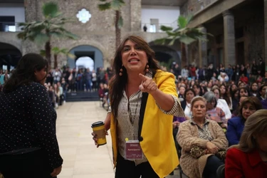 Natalia Lane reclamó a gritos a Bertha Alcalde que no existe una política efectiva para frenar y lograr justicia en los casos de transfeminicidios. Asistentes la respaldan.