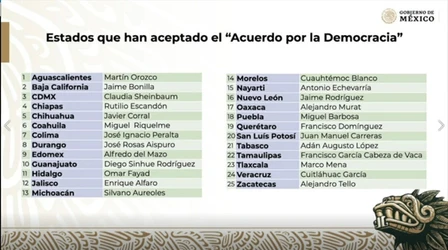 Apoyan 25 gobernadores acuerdo por la democracia: AMLO