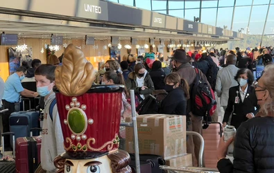 Otros 932 vuelos están retrasados. La nieve que cae a un ritmo de dos pulgadas por hora y las ráfagas vientos harán que las condiciones de viaje sean traicioneras.