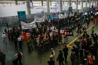 Este lunes pilotos y sobrecargos de la aerolínea se manifestaron en la Terminal 2 del AICM por falta de pagos y prestaciones.