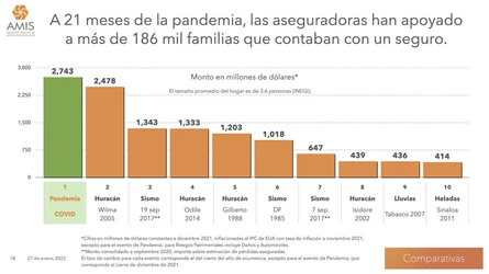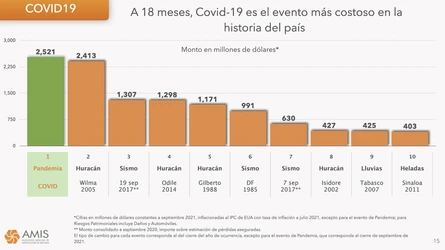 El coronavirus ya ocupa el segundo lugar de las catástrofes más costosas para las aseguradoras en México, siguiendo de cerca al huracán ‘Wilma’ de 2005.