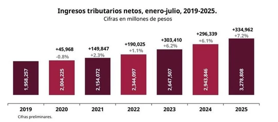 Ingresos tributarios se incrementaron 7.2% en julio: SAT
