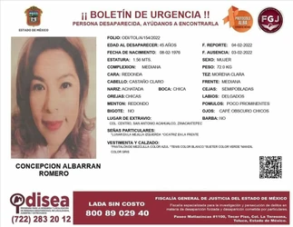 Concepción Albarrán Romero salió de su casa el 3 de febrero pasado a comprar unas cosas para la comida y nunca regresó.