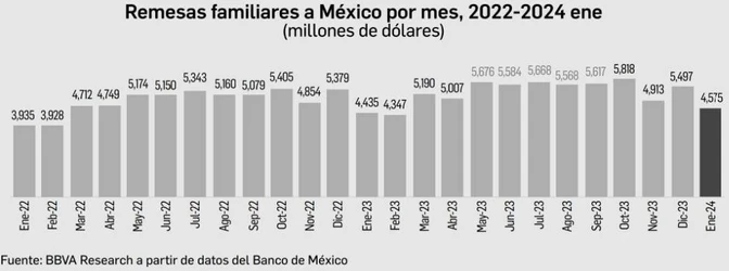 Remesas suman 4 mil 575 mdd, la mayor cifra en un enero desde 1995