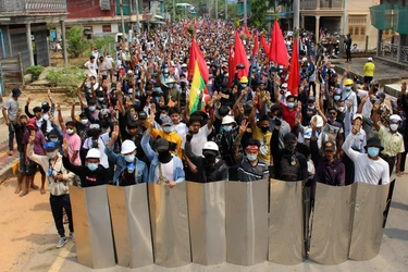 Manifestantes de Myanmar piden una "primavera revolucionaria"