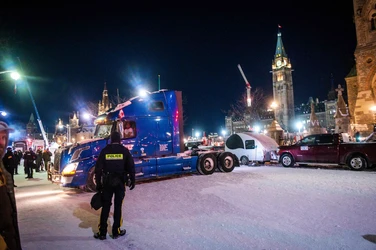 La policía inició el operativo para poner fin a la ocupación de las calles, al arrestar a dos dirigentes de la protesta contra las medidas para frenar el covid-19.