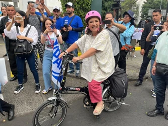 Ante el desorden que se generó y en medio de empujones de los medios de comunicación y panistas, la candidata se retiró de este cruce tal y como llegó, en bicicleta.