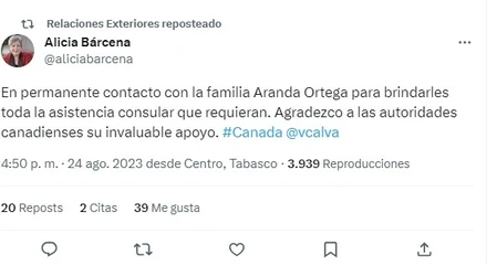 Esto es "para brindarles toda la asistencia consular que requieran", dijo Alicia Bárcena a través de su cuenta en la red social X.