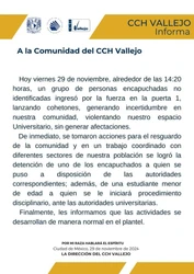 Encapuchados intentan tomar instalaciones del CCH Vallejo