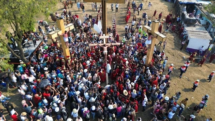 Fe, llanto, dolor real y drones se mezclan en viacrucis de Iztapalapa