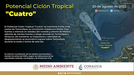 Prevén que ciclón tropical 'Cuatro' toque tierra en Tamaulipas