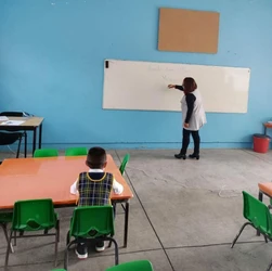 En el preescolar anexo a la escuela Margarita Maza de Juárez en Ecatepec, sólo acudió un alumno, de 178 inscritos en el plantel. La profesora le impartió clase.