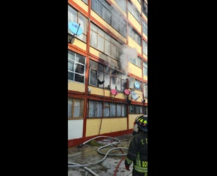 Personas que se encontraban en el exterior del edificio mencionaron a los policías que la probable responsable de la agresión se encontraba varios metros adelante.