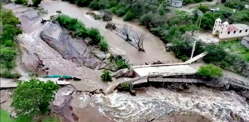 Lluvia provoca colapso de puente vehicular y peatonal en Tolimán, Querétaro