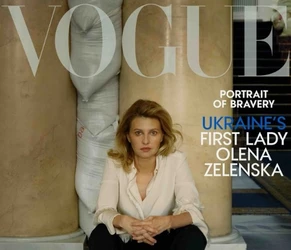 Con vestidos de altos diseñadores de Ucrania, Zelenska aparece en la portada, y en páginas interiores la pareja aparece abrazada, o dándose la mano mientras miran a la cámara