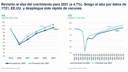 El banco mejoró su perspectiva del PIB este año y pasó de 3.2 a 4.7%, dijo Carlos Serrano. Recuperación a niveles previos a la pandemia será en 2023.
