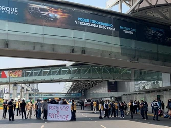 Se manifiestan afuera de la terminal 1 del AICM ante el elevado riesgo de contagio, pues cada día más de 20 de posibles casos son identificados en los filtros aeroportuarios.