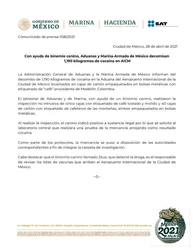 Personal de Aduanas decomisa mil 190 kilos de cocaína en el AICM