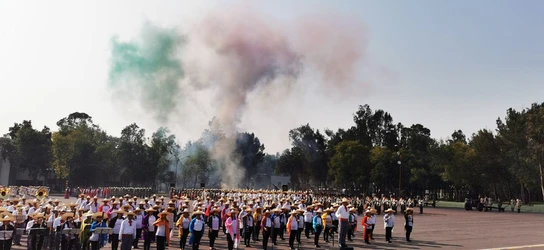 El gobernador Alejandro Murat, su familia e integrantes del gabinete estatal presenciaron el paso de las Fuerzas Armadas, policía estatal y de instituciones educativas.