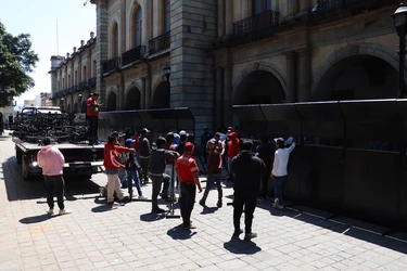 La colocación de vallas fue realizada por integrantes del sindicato Confederación Joven de México en coordinación con el gobierno estatal y el ayuntamiento capitalino.