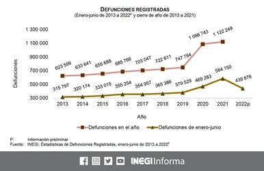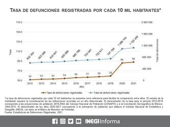 Registró un millón 122 mil 249 decesos, superior a la de un millón 86 mil 743 muertes de 2020. Enfermedades del corazón y diabetes , entre otras razones.